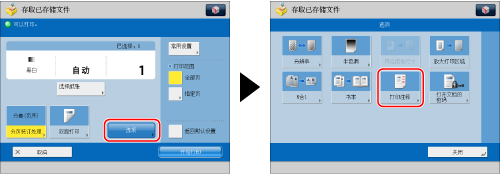 该模式只能用于打印存储在“高级存储箱”、网络上其他imageRUNNER ADVANCE机器的“高级存储箱”或存储介质中的文件。