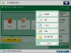 <<스캔하여 송신>에 팩스 표시>를 '설정'으로 한 경우 [스캔하여 송신]에 팩스 기능이 표시됩니다.