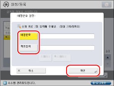 [비밀번호] 및 [확인입력]를 입력하고 → [확인] → [확인]을 누릅니다.