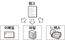 송신 기능을 사용하여 스캔된 이미지 또는 문서 데이터를 파일 서버로 송신하거나 이메일 또는 I-팩스로 송신할 수 있습니다. 다양한 파일 형식(PDF, JPEG, TIFF 및 XPS)이 지원되어 디지털 작업 환경을 수용하는 데 높은 유연성을 제공합니다.