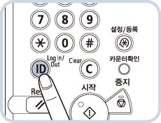 기기 사용을 완료한 후 로그아웃하는 것을 잊었더라도 [자동클리어 시간]이 설정된 경우 지정된 시간이 경과되면 부문 ID 및 비밀번호를 입력하는 화면이 자동으로 나타납니다. (See "자동 클리어 시간.")