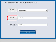 기기 사용을 완료한 후 로그아웃하는 것을 잊었더라도 지정된 시간이 경과되면 사용자 이름 및 비밀번호를 입력하는 화면이 자동으로 나타납니다. (See "자동 클리어 시간.")