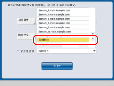 SSO-H('Domain Authentication + Local Device Authentication' 사용자 인증 시스템 포함)의 Domain Authentication 사용자 인증 시스템을 사용하는 경우, 드롭다운 리스트에서 로그인할 곳을 선택하십시오. 로그인할 곳 선택에 대한 자세한 내용은 "SSO-H(Single Sign-On H)."를 참고하십시오.