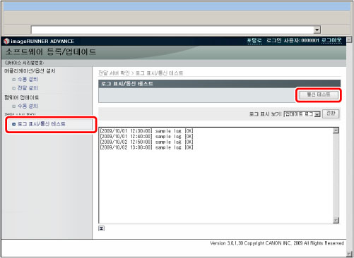 [소프트웨어 관리 설정] → [통신 테스트]을 누릅니다.