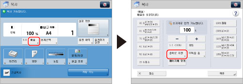 기기가 입력한 값에 따라 정확한른 배율(줌)을 자동으로 계산합니다. 하지만 원고 이미지가 용지 크기에 따라 조금 잘릴 수도 있습니다.
