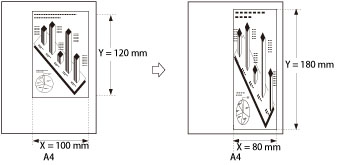 원고 크기의 폭 또는 길이를 입력할 수 있습니다. 원고 크기의 폭을 입력하는 경우 복사 크기의 폭도 입력해야 하며 그 반대의 경우도 마찬가지입니다.