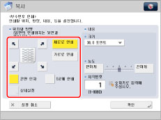 [부수인쇄 옵션]이 '해제'로 설정된 경우 [전면 인자] 및 [5곳에 인쇄]이 회색으로 처리되고 선택할 수 없습니다. (See "부수 번호 인쇄 옵션.")