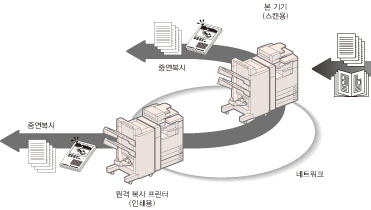 기기와 같은 모델 중에는 중연 복사 모드를 사용할 수 있습니다. (imageRUNNER ADVANCE 4051/4051A/4045/4045A/4035/4035A/4025/4025A) 서로 다른 시리즈 기기에서 이 모드를 사용할 수 없습니다.