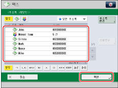 (시작)을 눌러 주소록 화면에서 송신하십시오. |