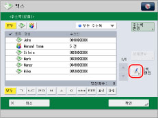 주소록 화면에서 [ㄱ], [ㄴㄷ] 및 [A~Z] 등과 같은 키를 누르면 이름에 대해 입력한 첫 번째 문자는 수신인 리스트를 정렬하는 데 사용됩니다.