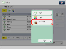 여러 수신인을 선택하려면 수신인 주소록을 선택하고 → [확인]을 누릅니다. [주소록 엑세스 번호 관리]을 '설정'으로 한 경우 [엑세스 번호]을 누릅니다.
