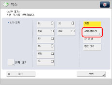 다음과 같은 종류의 원고를 스캔하는 경우에는 [자동]을 선택할 수 없습니다. 원하는 스캔 크기를 선택합니다.