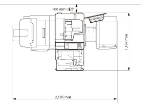 DADF-AG1, 내장 피니셔-D1, 외장 2/3홀 펀처-B2 및 페이퍼 데크 유니트-B2가 장착된 경우
