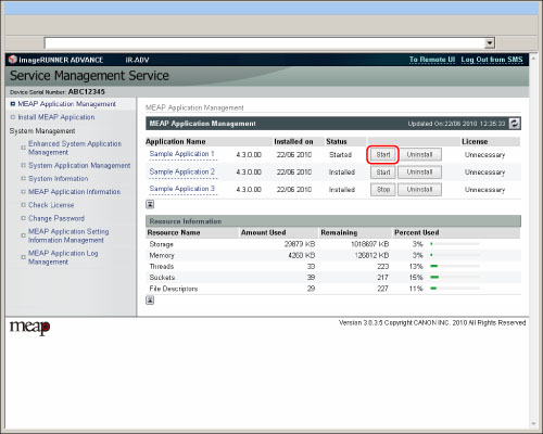 메모리, 스레드, 소켓 또는 파일 설명자에 필요한 리소스가 부족한 경우 [Start]를 클릭해도 응용 프로그램은 시작되지 않습니다.
