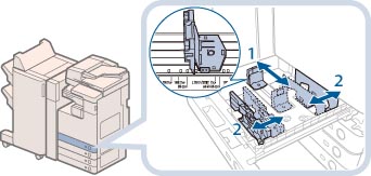 1.용지 카세트의 내부 커버를 열고 플레이트를 들어올립니다.