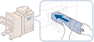 1.카트리지에 화살표로 지시하는 방향으로 새 토너 카트리지를 밀어 넣습니다. |