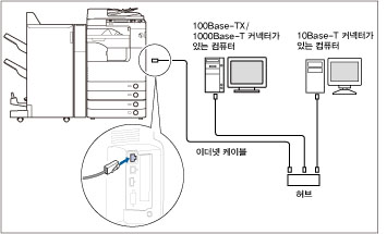 10Base-T/100Base-TX/1000Base-T 혼합 환경을 사용하는 경우에는 네트워크 장치(허브, 라우터 등)가 혼합 환경을 지원해야 합니다. 자세한 설명은 각 지역 공인 대리점에 문의하십시오.