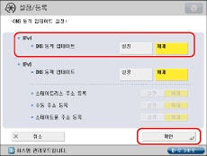 [IPv4 설정]에 대해 [IPv4 사용]을 누르고 → [설정] → [확인]을 누릅니다.