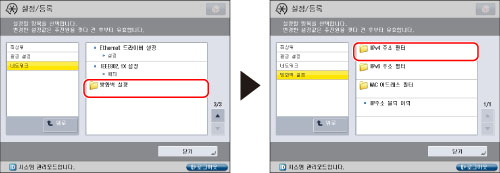 이 절에서는 조작패널을 사용하여 TCP/IPv4를 설정하는 절차에 대해 설명합니다. TCP/IPv6에 대한 설정을 지정한 후