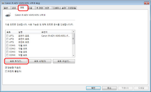 프린터 속성 대화상자에서 [포트 구성]을 클릭합니다.