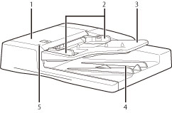 이 트레이에 세트된 원고는 한 장씩 원고대 유리로 자동적으로 급지됩니다. 스캔하고자 하는 면을 위로 하여 이 트레이에 원고를 놓습니다.