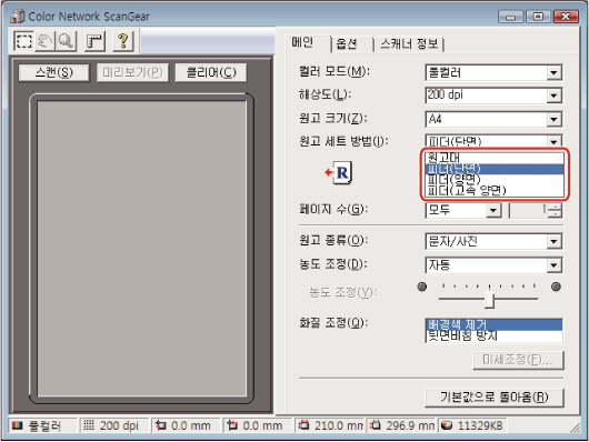 피더를 사용할 때는 미리보기를 표시할 수 없습니다.