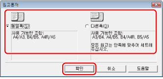 해당하는 원고 크기 조합을 선택하고 → [확인]을 클릭합니다.