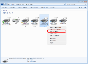 ](시작) → [제어판] → [프린터]를 클릭합니다.Windows XP Professional/Server 2003의 경우 [시작]→ [프린터 및 팩스]를 클릭합니다.