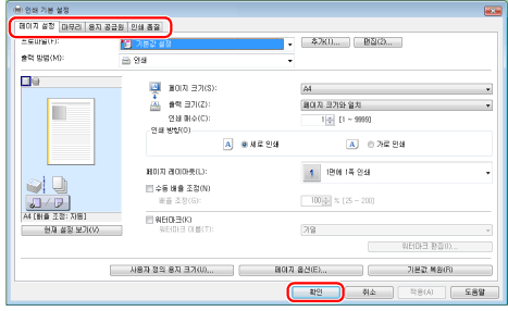 기본 인쇄 설정을 변경하려면 컴퓨터를 관리자 또는 고급 사용자 그룹의 구성원으로 로그인해야 합니다.