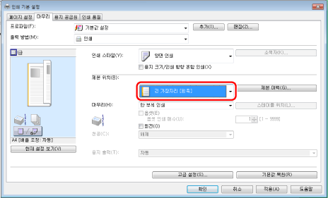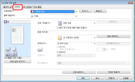화면은 운영 체제와 프린터 드라이버의 종류 및 버전에 따라 다를 수 있습니다.