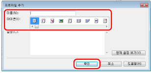 프로파일을 선택할 수 없을 경우 [조작 패널]에서 프린터 속성 대화 상자를 표시하고 [프로파일]을 클릭한 후 [프로파일 선택하기 허용] 및 [설정 추가하기 허용]가 선택되었는 지 확인 합니다. 프린터 속성 대화상자를 표시하는 방법에 대한 자세한 내용은 "프린터 옵션 설정"을 참고하십시오.