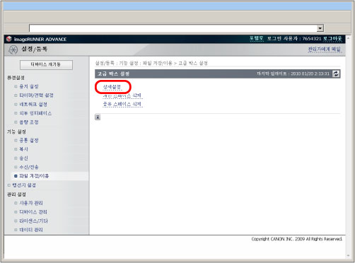 컴퓨터나 다른 기기를 통해 기기에 액세스한 사용자의 경우 해당 사용자에 대해 공개 고급 스페이스에 파일을 저장하거나 폴더를 생성하는 작업을 금지할지 여부를 설정할 수 있습니다.