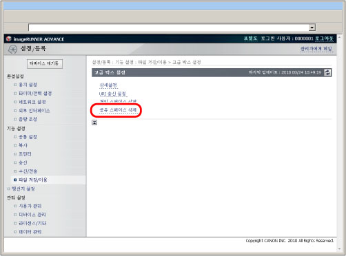 리모트 UI에서 공유 스페이스 내 단일 폴더만 삭제할 수 있습니다.