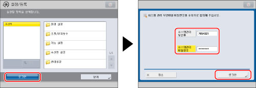 [시스템 관리 비밀번호] → [비밀번호] →
