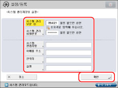 [시스템 관리자명]을 누르고 → 시스템 관리자 이름을 입력한 다음 → [확인]을 누릅니다.