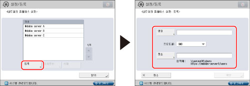 외부에 공개된 다른 imageRUNNER ADVANCE 시리즈 기기의 고급 스페이스가 아닌 다른 위치를 등록하지 마십시오. 이렇게 할 경우 기기에서 오작동이 발생할 수 있습니다.
