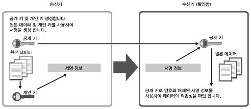 (See "전자 서명을 PDF 또는 XPS 파일에 추가하기 위한 키 페어, 기기 서명 증명서 및 사용자 증명서 생성과 확인.")