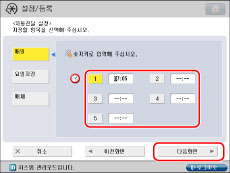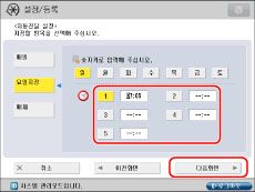 (숫자 키)를 사용하여 시작 시간을 입력하고 → [다음화면]을 누릅니다.