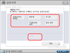 <설정/등록의 설정값>, <부문ID> 또는 <주소록>을 '설정'으로 지정하기 전에 [환경 설정](설정/등록)에서 기본 키를 설정해야 합니다. (See "SSL 암호화 통신에 사용되는 키 페어 설정.")