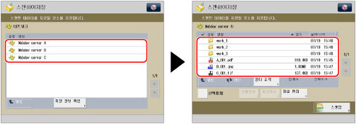파일 형식으로 [페이지별로 분할]이 설정된 경우 연속 세 자리 숫자가 파일 이름이 추가됩니다. 예: a_001.pdf, a_002.pdf, a_003.pdf