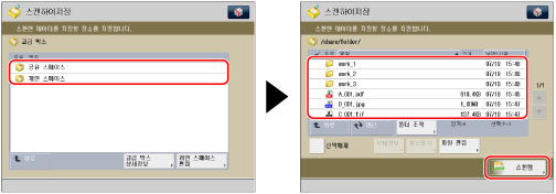 이 모드는 파일을 고급 스페이스, 네트워크에 다른 imageRUNNER ADVANCE 기기의 고급 스페이스 또는 메모리 미디어에 저장할 경우에만 사용가능합니다.