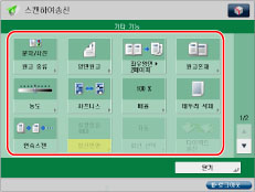 를 누르고 나서 표시된 메뉴에서 [SMTP인증 설정]을 선택하여 로그인된 사용자의 사용자 이름 및 비밀번호를 등록할 수 있습니다.[비밀번호를 항상 입력]이 ‘설정’으로 된 파일서버로 송신하려고 할 경우, 사용자명 및 비밀번호 입력 화면이 나타납니다. 이 경우 먼저 설정된 비밀번호를 입력합니다. 파일 서버를 그룹 주소로 등록하려는 경우[비밀번호를 항상 입력]을 '해제'로 설정합니다. 비밀번호를 그때마다 입력이 ‘설정’으로 지정된 파일 서버를 포함한 주소 그룹로 송신할 수 없습니다. (See "파일 서버 주소 등록.")