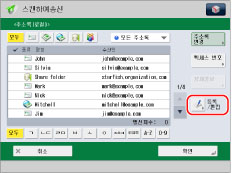 수신인을 삭제하려면 삭제할 수신인을 선택하고 → [삭제]를 누릅니다.