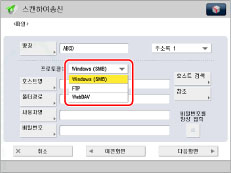 [Windows (SMB)] 또는 [WebDAV]를 선택합니다.