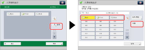 신규 수신인은 원터치 버튼에 저장된 그룹 수신인에 등록할 수 없습니다. 먼저 수신인을 원터치 버튼에 등록해야 합니다.