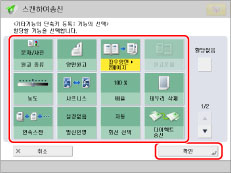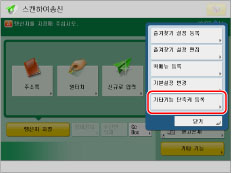 두 가지 기타 기능 단축키가 스캔하여 송신 화면에 표시됩니다. [양면원고] 및 [원고혼재]는 기본으로 표시됩니다. 이러한 단축키를 자주 사용하는 기능으로 변경할 수 있습니다.