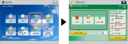 PDF 파일 형식으로 [고압축]을 선택한 경우 컬러 모드는 [자동 (컬러/흑백)] 및 [흑백]에서 [자동 (컬러/그레이)] 및 [그레이스케일]로 변경됩니다. 지정한 해상도 설정 및 컬러 모드로 문서를 스캔하려는 경우, PDF 파일 형식을 [고압축] 또는 [아웃라인] 이외의 형식으로 변경하고 XPS 파일 형식을 [고압축] 이외의 형식으로 변경합니다.
