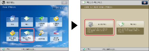 비밀번호를 입력하라는 메시지가 나타나면 [팩스/I-팩스 박스 설정]의 [시스템 박스 비밀번호]에 등록된 번호를 입력합니다. (See "팩스/I-팩스 박스 설정 지정.")