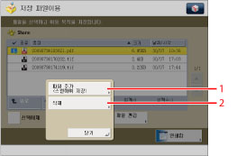 다음 경우에는 네트워크에 있는 다른 imageRUNNER ADVANCE 시리즈 기기의 고급 스페이스에 파일을 저장할 수 없습니다. (아래 숫자는 메모리의 남은 용량에 따라 달라질 수 있습니다.)