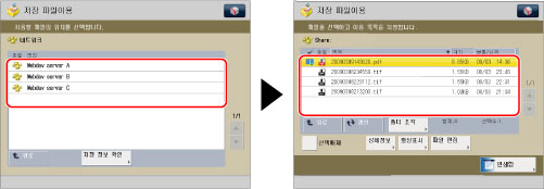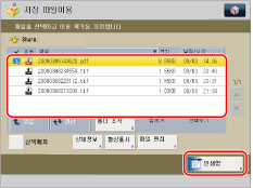 폴더에 두 개 이상의 문서가 저장된 경우 [명칭]이나 [날짜/시각]을 눌러 파일 리스트를 정렬할 수 있습니다.